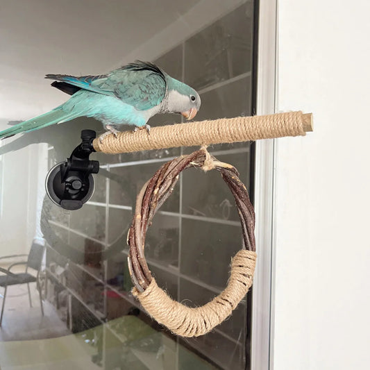 Wooden Parrot Standing Perch Hanging Toy Rack